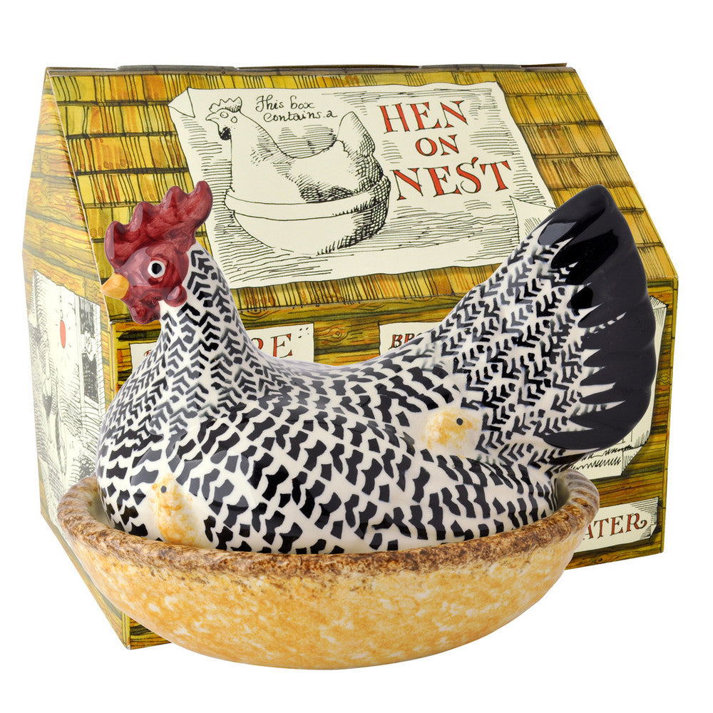 Keep your eggs cool and safe in this hand decorated Hen on Nest by Emma Bridgewater. Boxed in cute hen house packaging, it'll make a great gift for any hen keeper!