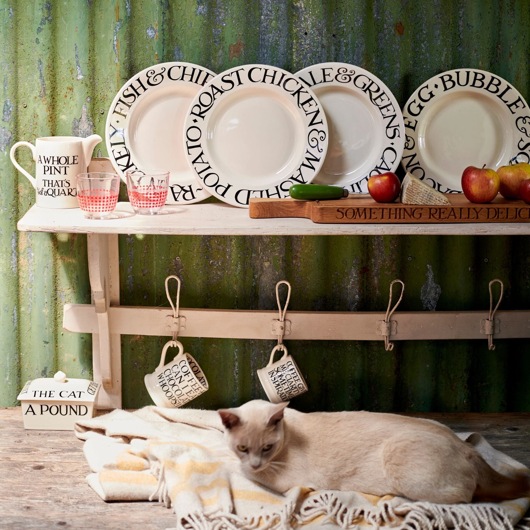 Introducing the newest addition to the classic Emma Bridgewater Black Toast collection - the Black Toast Veggies Plate! It's the perfect reminder to serve up an extra portion of veggies for a healthy meal. Don't forget your greens (and beans) with this quirky and playful plate.