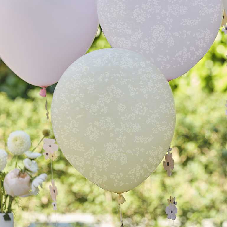 Each pack contains -5 x floral pastel party balloons & 5 x Floral tails, 1m.