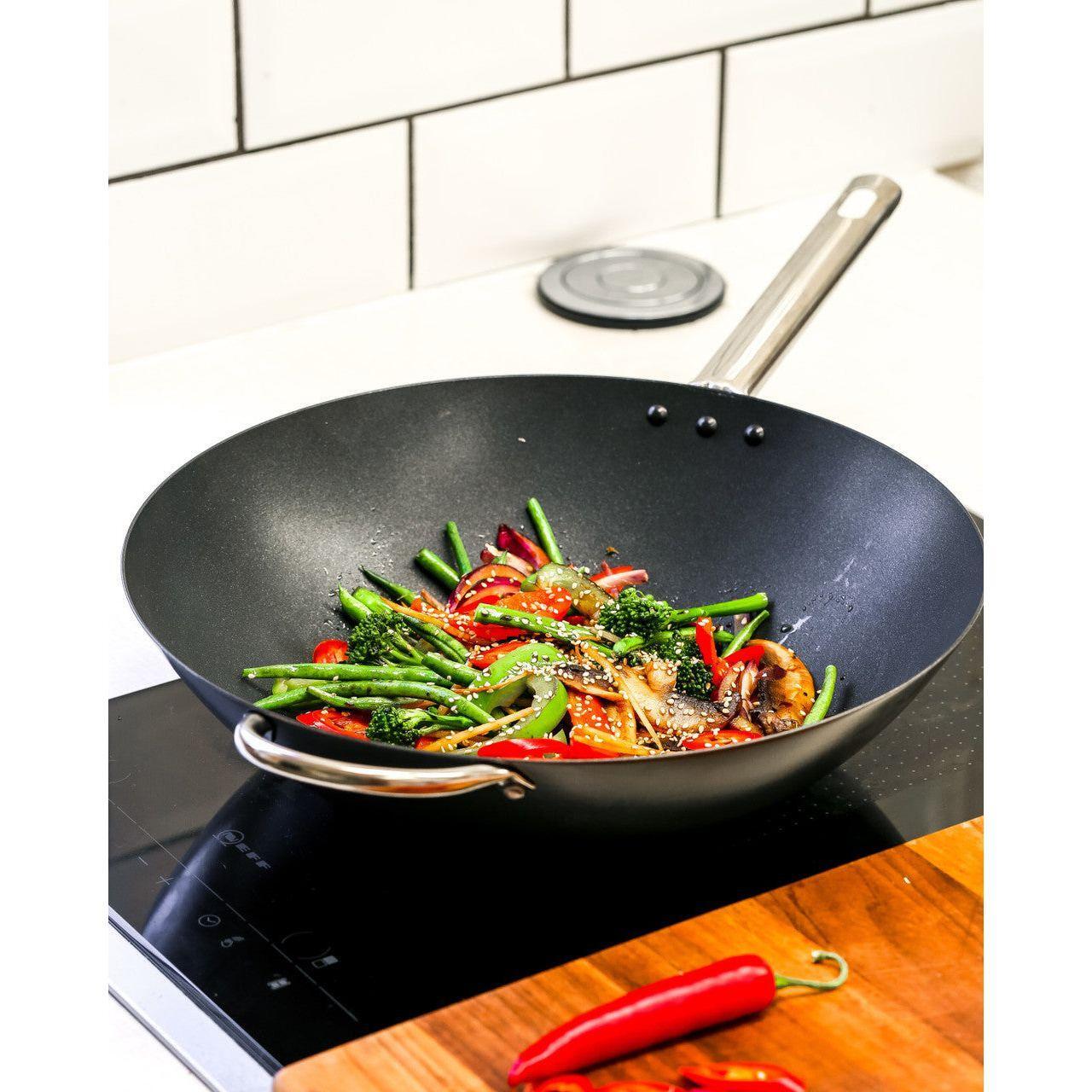 Be the master of your kitchen with the MasterClass Induction-Ready 30cm Wok. This smart choice for chefs and home cooks boasts a 100% PFOA, PTFE, and BPA free nano-silica non-stick coating, ensuring years of reliable use. With a 30 cm width, it's perfect for big portions and features a three-layer design for ultimate durability. (Frying up some fun has never been easier!)