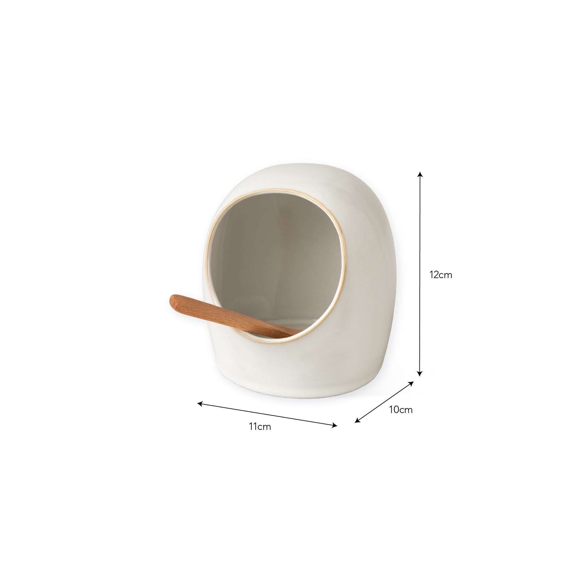 This delightful salt cellar comes with a bamboo spoon for sprinkling salt into cooking as it bubbles away on the stove. Each one is unique thanks to natural variations in the reactive glaze, and it's perfect for sitting on the kitchen countertop alongside other pieces from this striking collection.