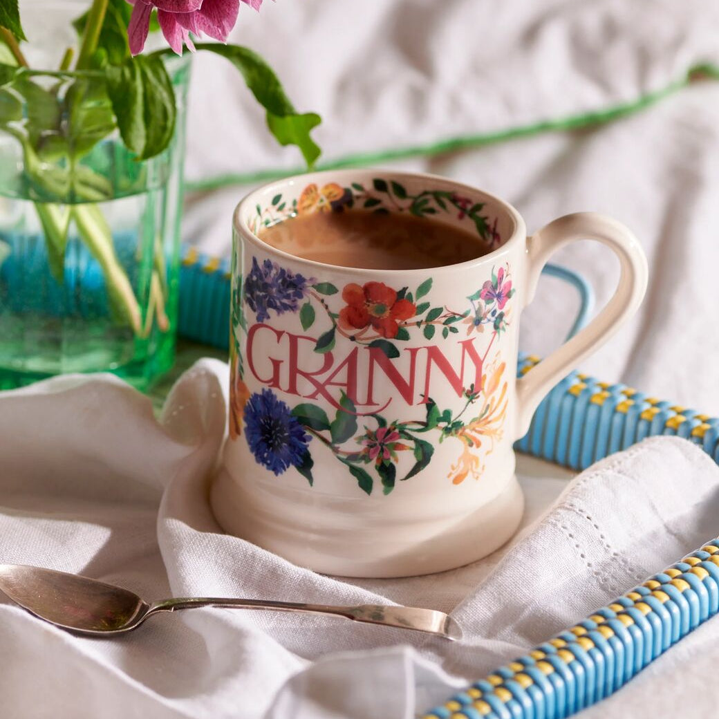 Celebrate the special grannies in your life with this charming Garden Flowers Granny Half Pint Mug. Featuring delicate floral designs that capture the beauty of a well-tended garden, this Emma Bridgewater piece transforms everyday tea and coffee into moments of joy. Perfect for Mother's Day on 15th March, it's a heartfelt gift that says "thank you" in pottery form—a warm hug she'll treasure with every sip. Let her enjoy her favourite beverages in style, knowing she's appreciated for all the wisdom, love and the very best hugs she gives.