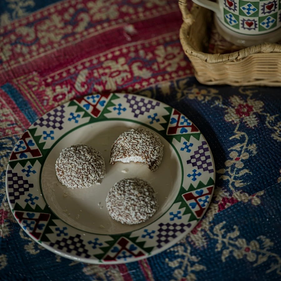 Spark your creative spirit with the Emma Bridgewater Christmas Quilt 8.5" Side Plate. Its charming geometric patchwork design celebrates the joy of handmade projects—whether you're learning to knit, finally upholstering that chair, or embarking on a quilting adventure. Pair it with the matching mug for cosy tea breaks whilst you dream up your next creation. Let this decorative plate inspire you to raid the attic for treasured fabrics and forgotten garments, transforming cherished memories into a one-of-a-kind quilt.