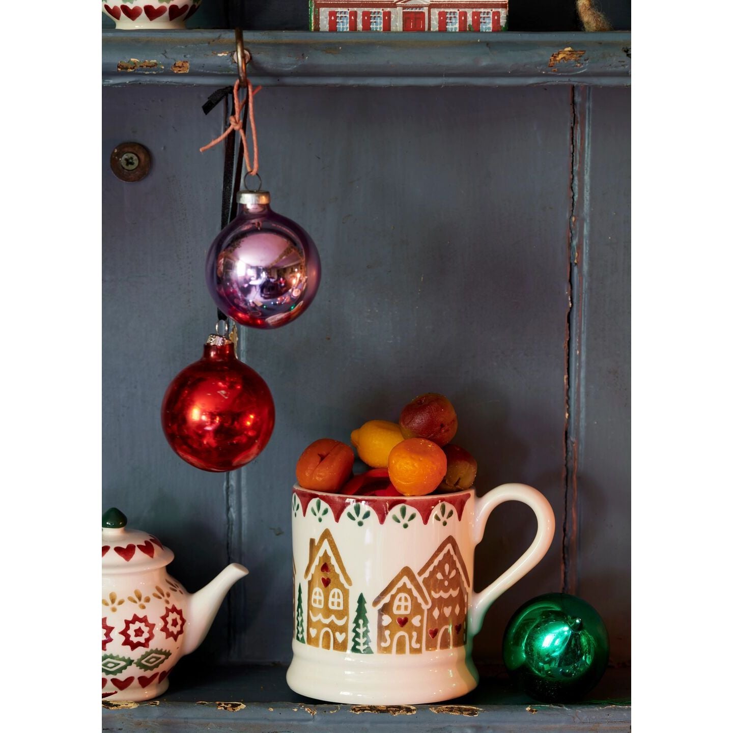 Satisfy your cravings with the Emma Bridgewater Gingerbread Half Pint Mug. The spicy aroma of homemade biscuits will fill your kitchen, perfectly paired with a cup of tea. So go ahead, indulge in some gingerbread and add a quirky touch to your drinkware collection.